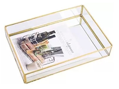 It seems like you’re describing a glass dish tray with gold borders that is safe for use with acrylic materials. This combination of materials might be used for various purposes such as serving trays, decorative trays, or even display trays. However, it’s important to note that “acrylic safe” could imply that the tray is resistant to damage from acrylic materials, or it could mean that the tray itself is made from acrylic and is safe for use.