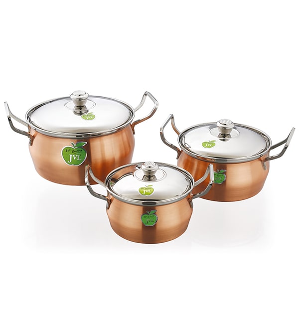 Buy JVL Armor Pot Full Copper Stainless Steel Cooking Pot with Lid – 3 Pcs Set Online at Best Price