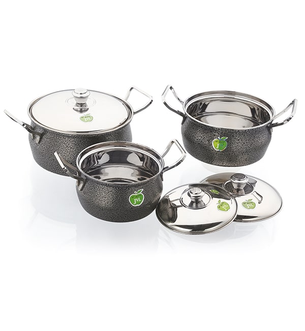 Buy JVL Armor Pot Powder Coated Stainless Steel Cooking Pot with Lid – 3 Pcs Set Online at Best Price
