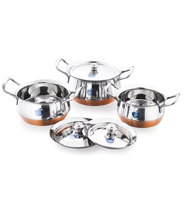 JVL Classic Copper Bottom Stainless Steel Cooking Pot Set (3-Piece) – Professional Performance with Traditional Craftsmanship