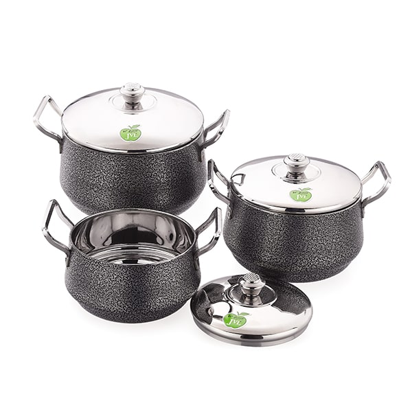 JVL Elite Pot Powder Coated Stainless Steel Cooking Sauce Pot Handi Vessel with Lid – 3 Pcs Set