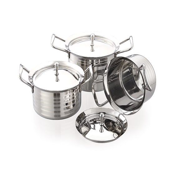 JVL Normal Pot Sliver Touch Stainless Steel Cooking Sauce Pot Handi Vessel with Lid – 3 Pcs