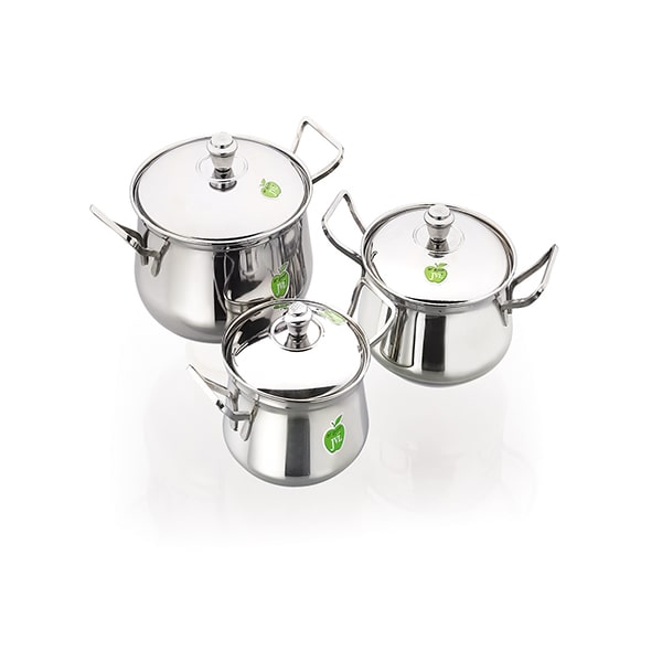 Buy JVL Opus Pot Plain Stainless Steel Cooking Sauce Pot Handi Vessel with Lid – 3 Pcs Online at Best Price | Kumbhat Dry Fruits
