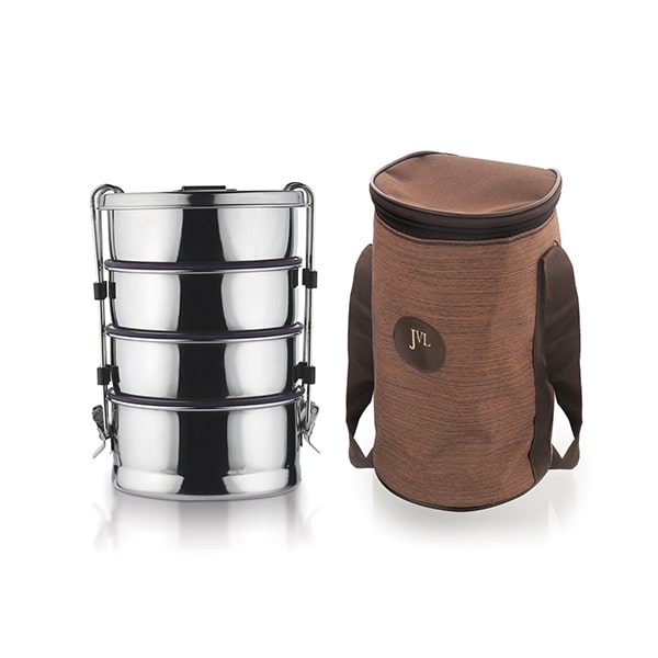 Buy JVL Stainless Steel Round Leakproof Tiffin Carrier Quadruple Lunch Box Online at Best Price | Kumbhat Dry Fruits