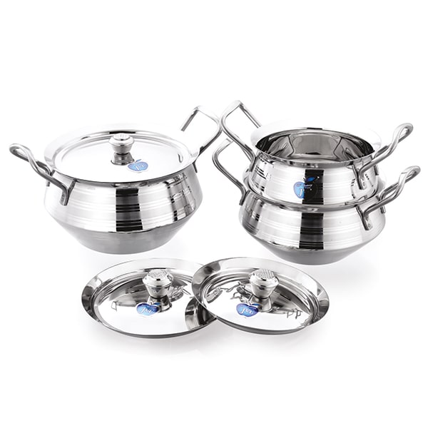 Buy JVL Stainless Steel Spike Pot Silver Touch Handi – 3 Pcs Online at Best Price | Kumbhat Dry Fruits