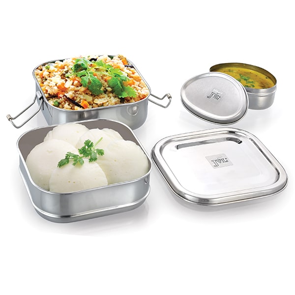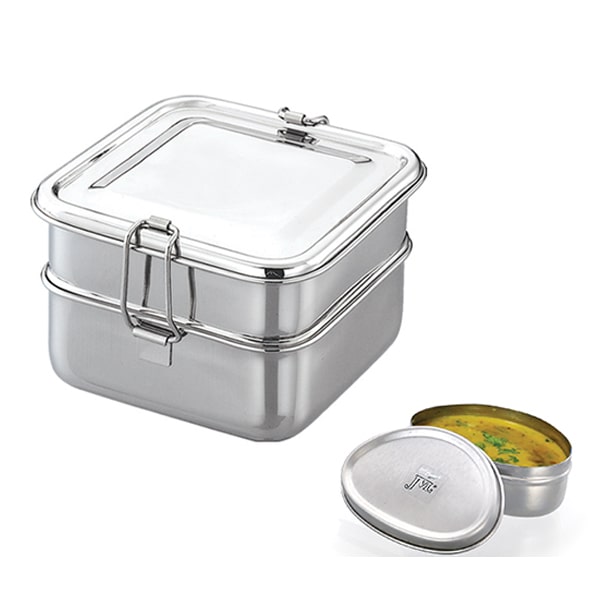 JVL Stainless Steel Square Lunch Box with Small Steel Container – The Ultimate Smart Meal Solution