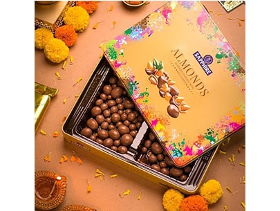 The Perfect Rakhi & Diwali Gift: The Sapphire Chocolate Coated Nuts is more than just a gift; it’s a symbol of your thoughtfulness and care. Presented in an elegant package, this assortment speaks volumes about your appreciation for your siblings and loved ones. Let the medley of flavors and textures create a memorable Rakhi celebration that resonates with joy and warmth.